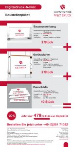 Aktion 1: Bauzaunbanner + Banner oder Roll-Up gratis, inkl. VersandGültig bis 11.07.2025 | Aktion 2: Gerüstbanner + Banner oder Roll-Up gratis, inkl. Versand Gültig bis 11.07.2025