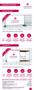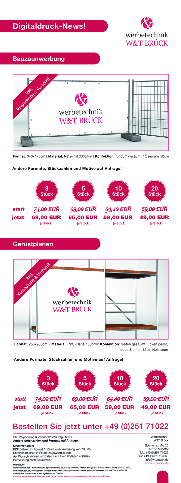 Aktion 1: Bauzaunbanner + Banner oder Roll-Up gratis, inkl. VersandGültig bis 11.07.2025 | Aktion 2: Gerüstbanner + Banner oder Roll-Up gratis, inkl. Versand Gültig bis 11.07.2025