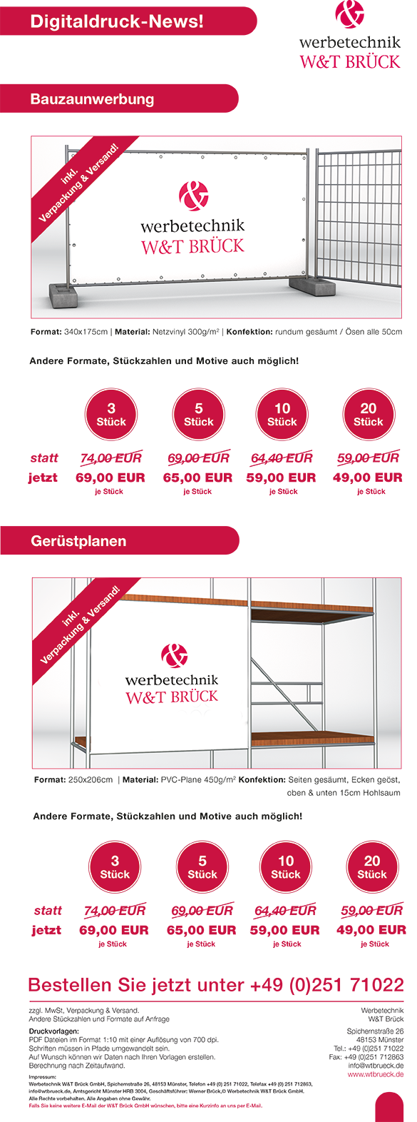 Aktion 1: Bauzaunbanner + Banner oder Roll-Up gratis, inkl. VersandGültig bis 11.07.2025 | Aktion 2: Gerüstbanner + Banner oder Roll-Up gratis, inkl. Versand Gültig bis 11.07.2025